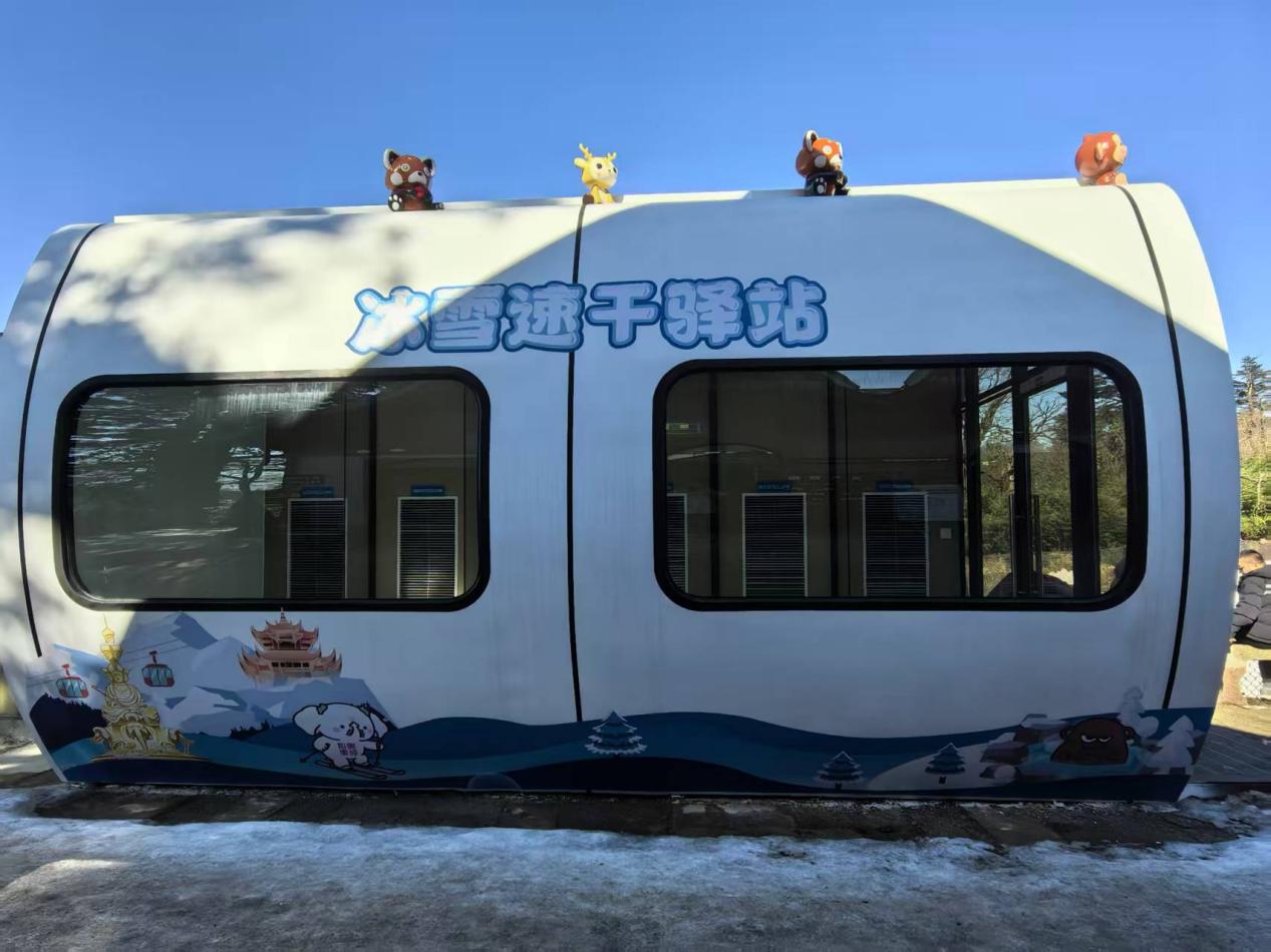 值得一提的是,今年峨眉山景区搭建了四川滑雪场内第一家冰雪速干驿站,专门解决滑雪后装备潮湿的痛点。驿站内的智能烘干设备无需复杂操作,只需将湿冷的滑雪靴、手套等放入,就能自动启动恒温热风模式,通过立体气流循环实现快速烘干。